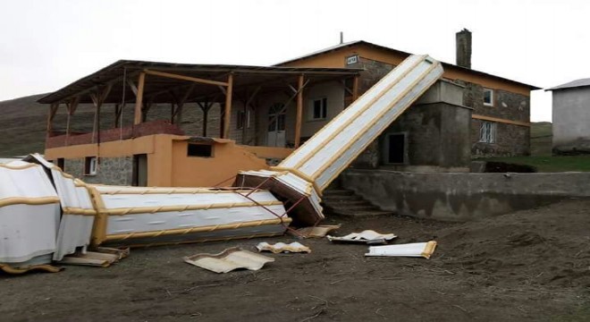 Aşkale ilçesinde etkili olan fırtınada köy camisinin minaresi yıkıldı, elektrik hatları koptu.