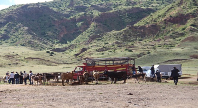 Erzurum'un Oltu ilçesindeki canlı hayvan pazarında, hayvan fiyatlarının yüksek olması yüzünden yaprak kımıldamıyor.