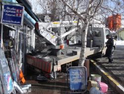 Tekman ilçesinde ARAS elektrik işlerinde çalışan özel bir şirkete ait sepet arabası, park halindeyken bir anda kendiliğinden geri geri gelerek nalburiye dükkanına girdi.