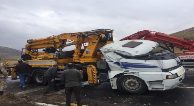 Erzurum-Çat karayolunda freni patlayan vinç bariyerlere çarparak yan yattı. Yola devrilen vinç sebebiyle durma noktasına gelen trafik, vincin kaldırılmasıyla normale döndü.