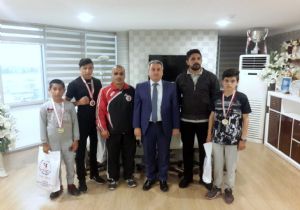 Erzurum’u Türkiye şampiyonasında başarılı bir şekilde temsil ederek, şampiyonluk kürsüsüne çıkan kick boksçular GHSİM Müdürü Fuat Taşkesenligil’i ziyaret etti.