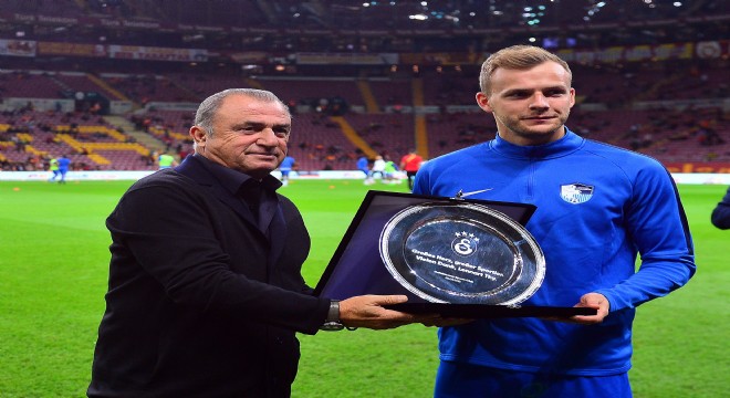 FIFA tarafından Fair Play Ödülü’ne layık görülen BB Erzurumspor’un Alman futbolcusu Lennart Thy’e Galatasaray plaket verdi.