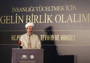 Bu yılki Kutlu Doğum Haftası ana temasının 'Hz. Peygamber, Tevhid ve Vahdet' olarak belirlendiğini kaydeden Başkan Görmez, insanlığa, İslam alemine ve Türkiye’ye ‘İnsanlığı yüceltmek için, gelin birlik olalım’ çağrısında bulunduklarını belirtti.