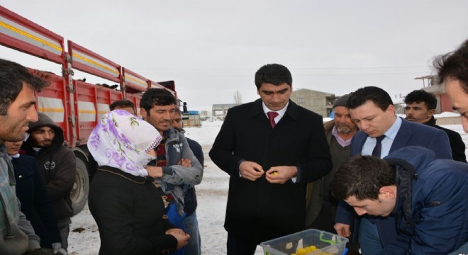 İlçe Tarım Müdür Vekili Evran hak sahiplerine hayvanların bakımı ile ilgili bilgiler verdi.