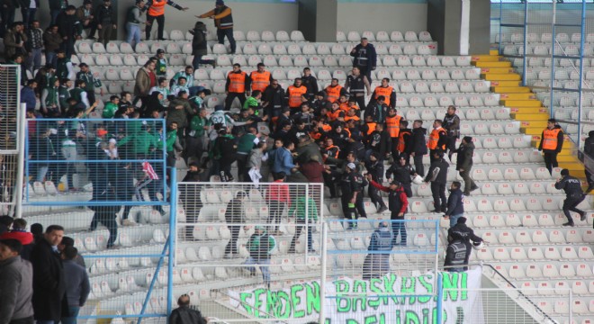 Kazım Karabekir Stadyumu'nda oynanan ve Büyükşehir Belediye Erzurumspor’un 5-4’lük galibiyetiyle sona eren maçın ardından Akın Çorap Giresunspor taraftarları taşkınlık çıkardı. Erzurumspor taraftarlarının bulunduğu alana doğru stat koltuklarını söküp fırlatan Giresunspor taraftarlarına polis müdahale etti.