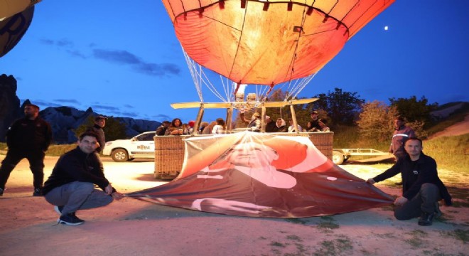 Bölgedeki sıcak hava balonları, Türk bayraklarıyla donatılarak gökyüzüne yükseldi.