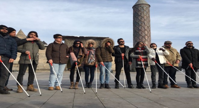 Erzurum Atatürk Üniversitesi İletişim Fakültesi 4.Sınıf öğrencisi Emine Sapanlı, “Atatürk Üniversitesi İletişim Fakültesi bünyesinde bir topluluk olan Mavi Ajans olarak, Erzurum Büyükşehir Belediyesi ile ortak yürüttüğümüz bu proje, onların hayatlarını biraz olsun anlamayı, onlar ile empati kurmayı, onlar ile bir engelde bizim olmamamız gerektiğine dikkat çekmek istedik. Görme engelli, doğuştan gelebileceği gibi daha sonra hastalık ya da kazalar sonucu da oluşabilir. Hepimiz birer görme engelli adayıyız. Bir gün bizim de başımıza gelebileceğinin farkında olarak görme engelli bireylerin hayatlarına bir engelde biz olmamak için bu sorunlara dikkat çekmemiz gerektiğinin farkına varmalıyız. Bu amaçla gerçekleştirilen etkinlikte, dikkat çekmek amacı ile katılımcıların gözlerinin kapalı olduğunu ve bastonla yolda ilerlemenin zorluklarına dikkat çekmek istedik. Amacımız bir nebze de olsa onlarla empati kurma, hayata onların penceresinden bakma ve onlara karşı daha duyarlı olmamız gerektiği konusunda bir farkındalık oluşturmaktır. Dünyada ve Türkiye’de görme engelliler için yapılan çalışmalar ne yazık ki yetersiz kalmaktadır. Gerek günlük hayatlarına devam ettirmede gerekse eğitim hayatlarında onlara gereken önem gösterilmemektedir” diye konuştu.