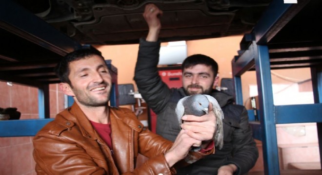 Taksinin muhafazasının içerisinden çıkarılan güvercin durağa getirilerek doğal yaşamına bırakıldı.