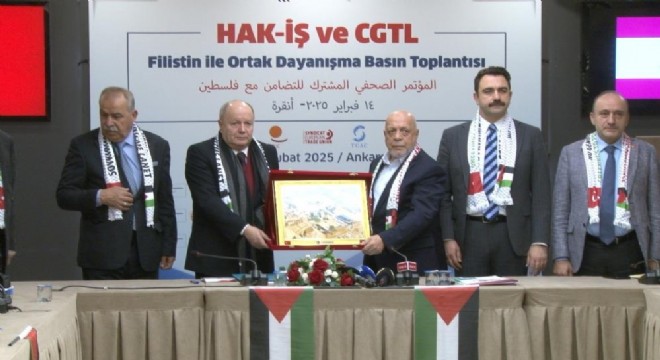 İsrail'in Filistin'e yönelik zulmüne dikkat çekmek ve destek vermek amacıyla bir araya gelen Hak İşçi Sendikaları Konfederasyonu (HAK-İŞ) ile Lübnan merkezli işçi sendikası Lübnan Genel İşçi Konfederasyonu (CGTL) ortak toplantı düzenledi.