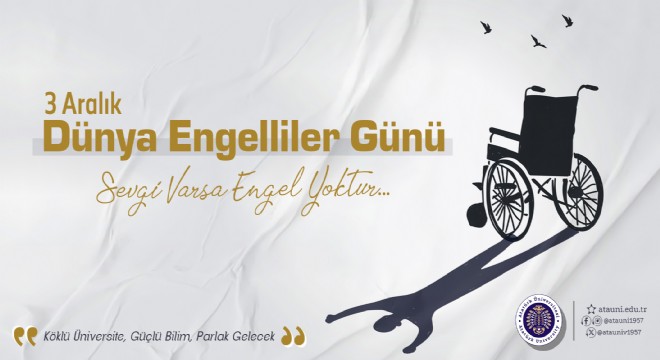 Atatürk Üniversitesi Rektörü Prof. Dr. Ahmet Hacımüftüoğlu, 3 Aralık Dünya Engelliler Günü münasebetiyle bir mesaj yayımladı. Rektör Hacımüftüoğlu mesajında şu ifadeleri kullandı: