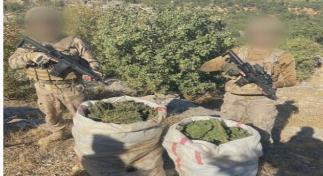 Diyarbakır'ın Hani ilçesinde "Eren Abluka-34 Narko Terör Operasyonları"nda 180 bin 200 kök kenevir, 335 bin kök skunk, 103 kilogram toz esrar ve 493 kilogram kubar esrar ele geçirildi.