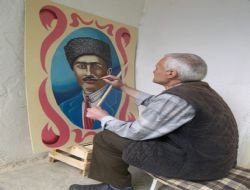 PEHLÜL DÜZENLİ(İHA) - Narmanlı ressam Mustafa Turanoğlu Oltu Milis Kuvvetleri Komutanı Yasin Haşimoğlu'nun MDF üzerine yağlı boya portresini yaptı.