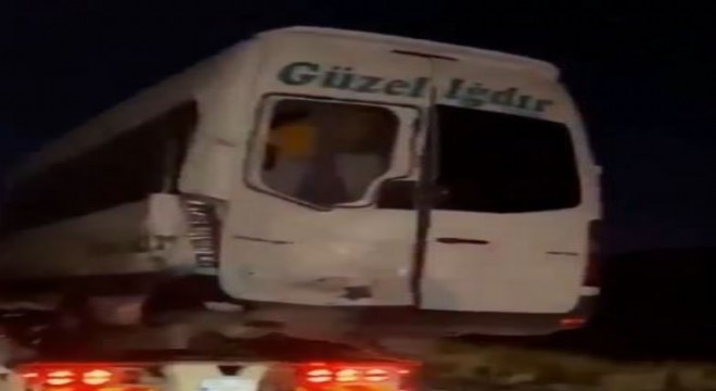 Iğdır’da Erzurum’a günlük hasta götürüp getiren araç yol kenarında beklerken bir aracın arkadan çarpması ile şarampole yuvarlandı.