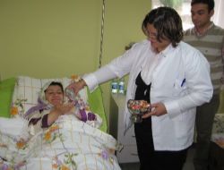 Başhekim Yardımcısı Akçay ise bayramı hastanelerinde geçiren hasta ve yakınlarını misafir olarak gördüklerini dile getirerek, "Hastanemizde yatan bütün misafirlerimizi ve onların yakınlarının bayramlarını tek tek tebrik edip, çikolata ikramında bulunduk. İnsana hizmet, Hakk'a hizmet. Bu bayramda hastane personeli ve hastalarımızla güzel ve mutlu bir tablo oluşturduk." şeklinde konuştu.
