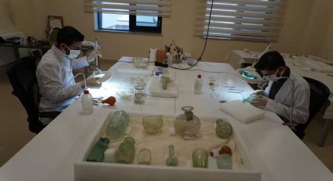 Bu eserlerin ayağa kalkması ve yeniden sergilenmesi için yapılan çalışmalar çerçevesinde 205 esere ait parçalar Erzurum Restorasyon ve Konvervasyon Bölge Laboratuvarı'nda uzman ellere teslim edildi. Bugünlerde Rabia Genç, Muhammed Kırmaç, Erol Usman, Mete Efe Candar ve Örüm İmamoğlu oluşan ekip sabırla, adeta yapboz tekniği ile yüzyıllık eserleri bir kez daha hayata döndürüyor. Erzurum Restorasyon ve Konvervasyon Bölge Laboratuvarı Sanat Tarihçi ve Restoratör Rabia Genç, Hatay Müzesi'nden kendilerine gelen cam ve pişmiş eserleri titiz bir çalışma ile ayağa kaldırmaya çalıştıklarını ifade ederek, "Bunlar tarihe dair önemli izleri taşıyan eserler. Deprem sonrası meydana gelen tahribatları gidermeye ve yeniden Hatay Müzesi'nde sergilenmeleri için yoğun bir emek harcıyoruz. Seramik ve cam eserlerin tek tek parçalarını bulmaya çalışıyoruz" şeklinde konuştu.