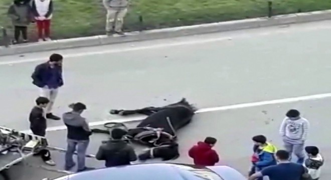 Atın yorgunluktan düştüğü konuşmalara yansıdı. Cep telefonuna yansıyan görüntü hayvan severlerin tepkisine neden oldu