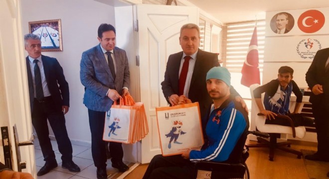 Erzurum Valisi Okay Memiş’in de desteklerini arkasına alan Antrenör Ali Ekber Erol yönetimindeki Tekerlekli Sandalye Basketbol Takımı, Gençlik ve Spor İl Müdürü Fuat Taşkesenligil’i ziyaret ederek, kendisine forma hediye ettiler. Taşkesenligil de, bedensel engelli basketbolculara çeşitli hediyeler verdi.
