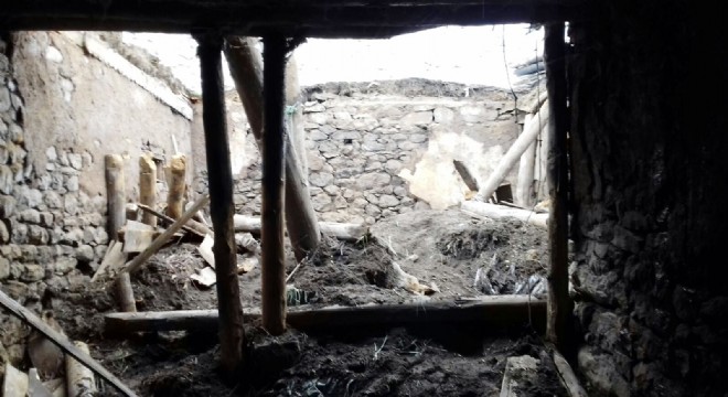 Horasan Yazılıtaş ta ahır çöktü hayvanlar telef oldu