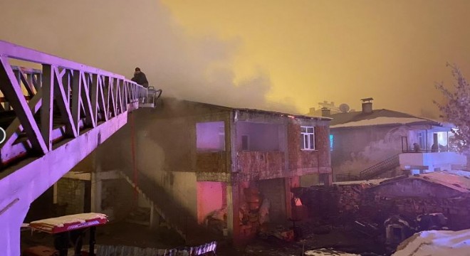 Horasan ilçesinde 2 katlı bir binanın çatı kısmında çıkan yangın itfaiye ekiplerince söndürüldü.