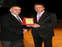 Konuşmasının ardından Yükçü'ye Atatürk Üniversitesi İktisadi ve İdari Bilimler Fakültesi Dekanı Prof. Dr. Suphi Orhan tarafından plâket takdim edildi.