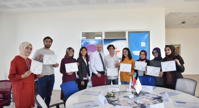 Katılım belgeleri, Kariyer Planlama Uygulama ve Araştırma Merkezi Personeli Hande Kafadar ve İş Kulübü lideri Ali Haydar Kolik tarafından takdim edildi.