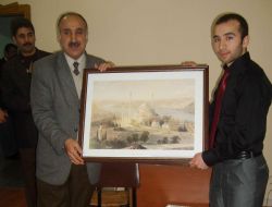 Açılış törenine katılan Erzurum İlahiyat Fakültesi mezunu Mahmut Balcı ve Ali Karayılan, kültür sanat topluluğuna birer tablo hediye ettiler.