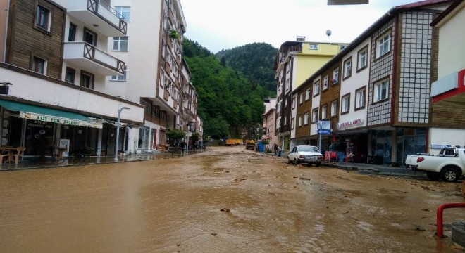 Rize'de etkisini gösteren sağanak yağış sonrası heyelan meydana geldi. İkizdere ilçesinde yan derelerin taşması ile ilçe merkezi suya gömüldü.