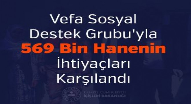 Valilik ve kaymakamlıklar koordinasyonunda oluşturulan Vefa Sosyal Destek grupları, 65 yaş ve üstü ile kronik rahatsızlığı olan vatandaşlara sokağa çıkma kısıtlaması getirilmesinin ardından bugüne kadar 569 bin 549 haneye ulaşarak, ilaçtan gıdaya tüm ihtiyaçlarını temin etti.