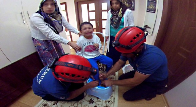 "Ayağı plastik tabureye sıkışan çocuğu itfaiye kurtardı"