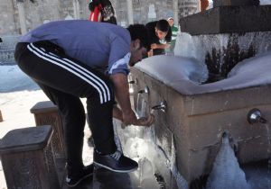 Hava sıcaklıklarının eksi 20 derecelere kadar düştüğü Erzurum’da buz tutan çeşmelerde abdest alan vatandaşlar ilgi odağı oldu.