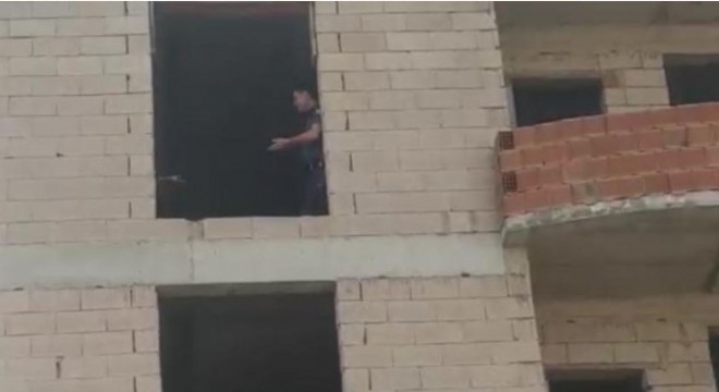 Horasan ilçesinde 3 katlı inşaata çıkarak intihara kalkışan genci polis ekipleri ikna ederek aşağı indirdi.