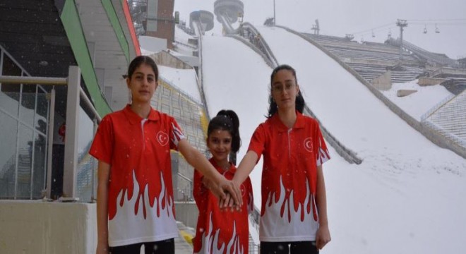 Erzurum Atlama Kulelerinde çalışmalarını sürdüren Aslıhan Güven (14), Elif Azra Şerefoğlu(12) ve Ravzanur Ekmekçi(13) Türkiye’yi Uluslararası arenada temsil etmek için çalışıyor.