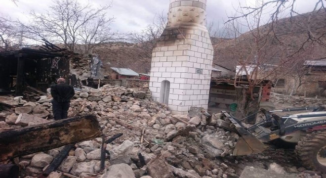 Erzurum'un Oltu ilçesine bağlı İri Ağaç Köyü Camii, Miraç Gecesi elektrik kontağından çıkan yangında kül oldu. Caminin enkaz kaldırma çalışması hızla devam ediyor.