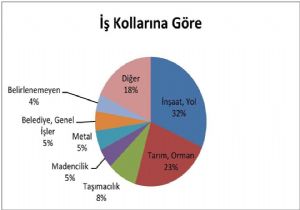 İnşaat, yol işkolunda 45 işçi, Tarım, orman iş kolunda 33 işçi, Taşımacılık iş kolunda 12 işçi, Madencilik iş kolunda 7 işçi, Metal iş kolunda 7 işçi, Belediye, Genel İşler iş kolunda 7 işçi, Çalıştığı iş kolu belirlenemeyen 6 işçi; Petro-Kimya, Lastik işkolunda 3 işçi, Basın gazetecilik iş kolunda 3 işçi, Ticaret, büro, eğitim, sinema iş kolunda 3 işçi, Sağlık, sosyal hizmetler iş kolunda 3 işçi, Konaklama, eğlence iş kolunda 3 işçi- Savunma, güvenlik iş kolunda 3 işçi, Gıda, şeker iş kolunda 2 işçi, Enerji iş kolunda 2 işçi, Ağaç, kağıt iş kolunda 1 işçi, İletişim iş kolunda 1 işçi, Çimento, toprak, cam iş kolunda 1 işçi, Gemi, tersane, deniz, liman iş kolunda 1 işçi hayatını kaybetti.