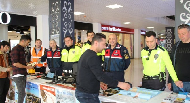 Oltu Bölge Trafik ekipleri Oltu Jandarma trafik ekipleri ve Karayolları trafik ekipleri İş merkezi girişinde stant açtılar.