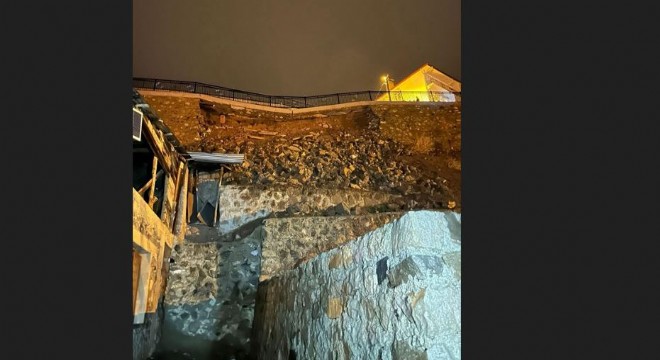 İspir ilçesinde seyir terasının alt kısmında meydana gelen heyelan sonrası 2 konut tedbir amaçlı tahliye edildi.