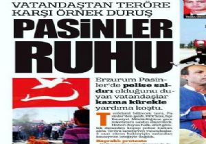 TÜRKİYE gazetesi bugünkü manşetinde, Pasinler ilçesindeki birlik ve beraberlik görüntüsünü, teröre karşı gönül birlikteliğini ‘Pasinler Ruhu’ başlığıyla verdi.