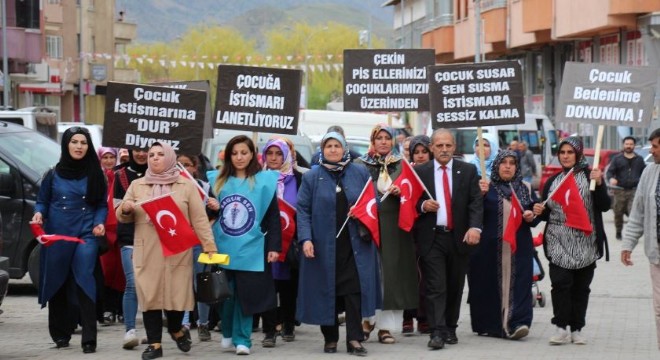 Oltulu kadınlar “Çocuk İstismarı ve Kadına Şiddete Hayır” konusuna dikkat çekmek için yürüdüler.
