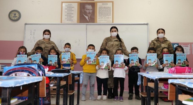 İl Jandarma Komutanlığı’ndan yapılan açıklamada, “İl Jandarma Komutanlığımız personeli, Ilıcalar Ortaokulunda öğrenim gören, yaşları 6-14 arasında değişen öğrencilere tablet, bilgisayar ve çocuk dergisi hediye edilerek, Jandarma Genel Komutanlığının faaliyetlerini tanıtmıştır” denildi.