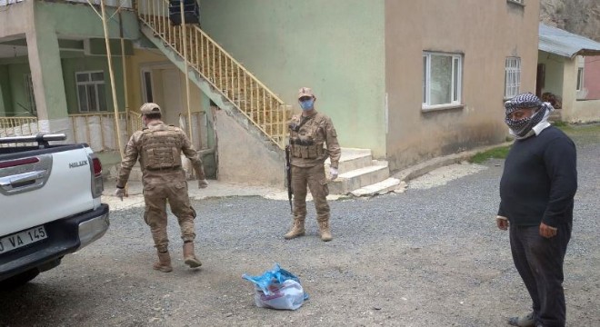 Hakkari İl Jandarma Komutanlığına bağlı askerler fitre ve zekatlarını karantina bölgesindeki ihtiyaç sahiplerine dağıttı.