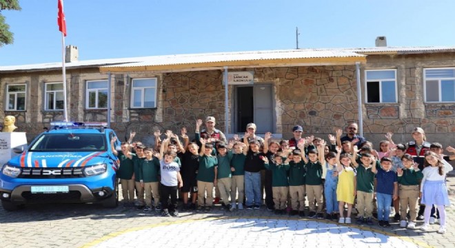 Bingöl'de jandarma ekipleri, öğrencilerle bir araya gelerek ilk gün heyecanlarına ortak oldu.
