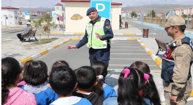 Kars’ta jandarma ekipleri öğrencilere trafik eğitimi verdi. Eğitim alan çocuklar, parkurdan mutlu ayrıldı.