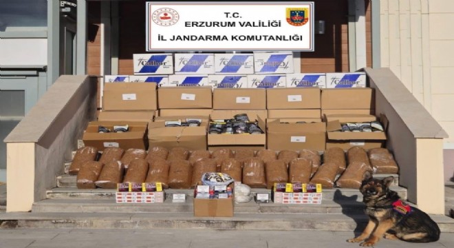 Erzurum İl Jandarma Komutanlığı Kaçakçılık ve Organize Suçlarla Mücadele Şube Müdürlüğü ve Palandöken İlçe Jandarma Komutanlığınca kaçakçılıkla mücadele kapsamında 16 Mart 2025 tarihinde Palandöken ilçesinde tütün köpeği Zahir’in de katkılarıyla yürütülen çalışmalar neticesinde; 518 adet kesilmiş bandrol, 255 kg kaçak tütün, 14 bin 884 adet sigara kağıdı, 20 bin adet sigara filtresi ve 560 bin adet boş makaron ele geçirildi.