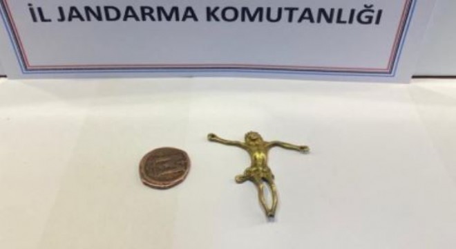 Elazığ’da jandarma ekiplerinin tarihi eser kaçakçılarına yönelik yaptığı operasyonda, Hz. İsa resimli 1 adet metal heykelcik ve 1 adet sikke ele geçirilirken, 2 şüpheli gözaltına alındı.