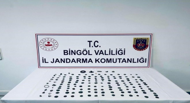 Valilikten yapılan açıklamada, “İl Jandarma Komutanlığı unsurlarınca, tarihi eser kaçakçılarıyla mücadele kapsamında Bingöl ili Karlıova ilçesinde icra edilen faaliyet sırasında; Helenistik, İslami, Osmanlı, Roma ve Bizans dönemlerine ait olduğu değerlendirilen 132 adet sikke, 11 adet yüzük, 1 adet bilezik ve 16 adet obje olmak üzere toplam 160 adet tarihi eser ele geçirilmiştir” denildi.
