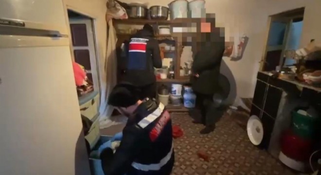 Jandarma ekiplerince gerçekleştirilen operasyonda, toprağa gömülü vaziyette ...