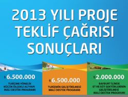 Yapılan açıklamada, 2013 Yılı Mali Destek Programları kapsamında; Turizme Yönelik Küçük Ölçekli Altyapı Mali Destek Programı kapsamında Asil Listede yer alan 12 projeye toplam 6.4 milyon TL, Kar Amacı Güden Kuruluşlar için Turizmin Geliştirilmesi Mali Destek Programı kapsamında Asil Listede yer alan 24 projeye toplam 4.4 milyon TL, Kar Amacı Gütmeyen Kurum ve Kuruluşlar için Turizmin Geliştirilmesi Mali Destek Programı kapsamında Asil Listede yer alan 12 projeye toplam 1.9 milyon TL,
