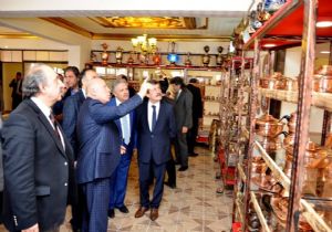 Salondaki bakır sergisinin ardından proje kapsamında oluşturulan atölyede bakırcılık kursunu gezen Vali Süleyman Kahraman, Erzurum Valisi Dr. Ahmet Altıparmak ve beraberindekiler, kursa katılan kursiyerlerle sohbet ettiler. Yaptıkları el işlemeli bakırlarla hem meslek öğrenen, hem de Erzincan Bakırını yeniden canlandıran kursiyerlere başarılar dileyen Vali Süleyman Kahraman, emeği geçenlere teşekkür etti.