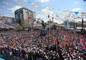 CHP ve HDP'ye "Paralel Yapı"nın da destek verdiğine işaret eden Davutoğlu, alandakilere "Büyük oyun bu. AK Parti gitsin, Türkiye düşüşe geçsin, bu beyefendiler de sefa sürsün. Büyük oyunu bozmaya var mısın? Kim tuzak kurarsa kursun, tuzaklarını başlarına çalmaya var mısın? Milli iradeyi egemen kılmaya var mısınız?" diye sordu.