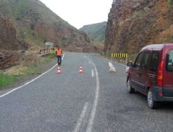 SERKAN ÇAĞLAR (İHA) - Kağızman-Erzurum karayolu 45. km sondaj çalışmaları nedeniyle trafiğe kapatıldı.Karakurt mevkiinde yapılacak olan hidro termik santrali için yapılan sondaj çalışmaları nedeniyle Erzurum- Kağızman karayolu trafiğe kapatıldı. Yola düşen taşların tehlike oluşturması üzerine yolu kapatan yetkililer belli aralıklarla yolu açarak araçlara yol verdiler. Süren çalışmalar nedeniyle Kağızman- Erzurum karayolunu kullanan şoförler taş düşmesine karşı uyarıldı.